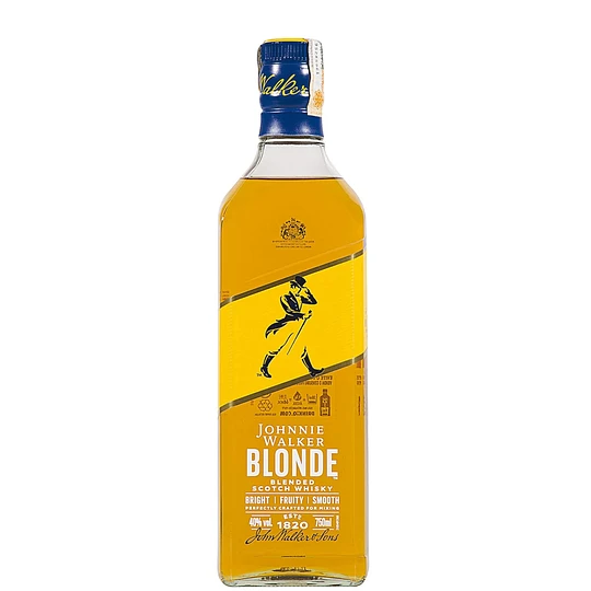 Johnnie Walker Blonde, es un blended scotch whisky lanzado hace algunos años como una edición especial con 40 grados de alcohol y sin declaración de edad, esta expresión debe su nombre y el característico color de su etiqueta a un perfil de sabor suave y desenfadado.